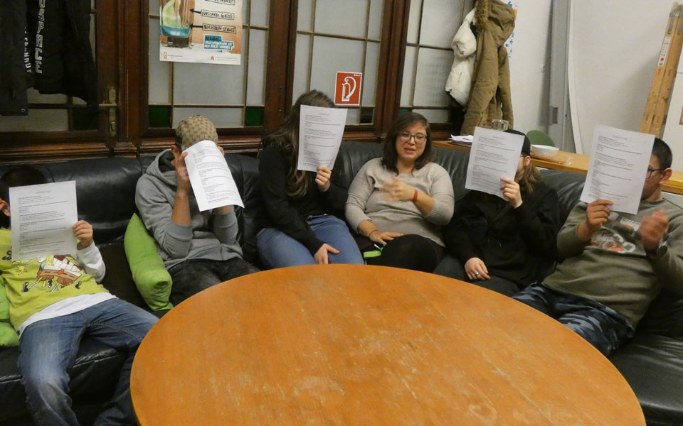Im Detail ist das Projekt so abgelaufen: Zuerst haben wir ein – zwar absurdes, aber in Relation zu anderen gängigen Theorien durchaus nicht übertrieben unglaubwürdiges – Thema gefunden. Zum Thema haben wir gemeinsam dann ein Motiv identifiziert, auf dessen Unterbau unsere Verschwörung fußen konnte. Als dann außerirdische Delphinwesen mit dem Klimawandel und dem Wirken von Greta Thunberg ausreichend plausibel in Verbindung gebracht waren, kümmerten wir uns angestrengt um die argumentative Untermauerung unserer Phantasie, suchten theoretische Veröffentlichungsmöglichkeiten und Indizien, wo auf der Welt etwas ähnliches geschehen könnte. Wir stellten die Theorie einigen anderen Jugendlichen vor und versuchten anhand deren Respons die Lücken in unseren Überlegungen – unter großem Gelächter – zu schließen. Nachdem das erledigt war, steckten wir über dem letzten Punkt die Köpfe zusammen und überlegten uns, wie aus unserer Verschwörungstheorie nun am besten Kapital zu schlagen wäre. Zwischen pseudo-investigativem Journalismus und diversen Mystery-Sendungen im Fernsehen konnten die Jugendlichen* einmal mehr ihre Kreativität unter Beweis stellen.