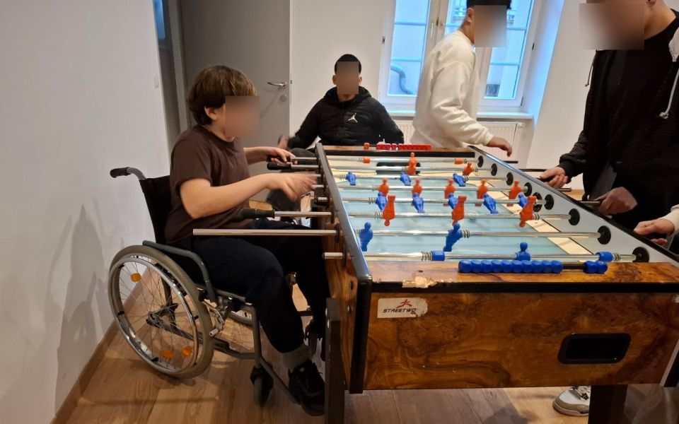 Trotz der Herausforderungen kam auch der Spaß nicht zu kurz: Beim Tischfußball im Sitzen war voller Körpereinsatz gefragt, und die Jugendlichen merkten schnell, wie wichtig Barrierefreiheit und eine gute Anpassung des Umfelds sind.