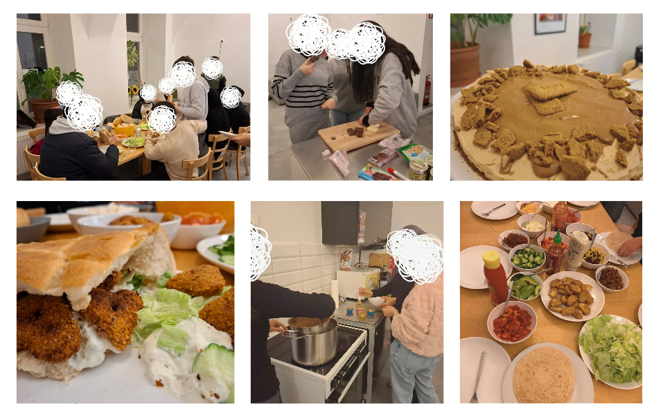Das ursprüngliche Ziel des „Kochclubs“, wie er von der Zielgruppe genannt wird, war die Zusammenarbeit von Jugendlichen unterschiedlicher Altersgruppen, Geschlechter und Nationalitäten. Darüber hinaus eignete sich das Projekt für einige hervorragend als Lernerfahrung, um selbstständiges Handeln zu erproben. Gerechte Aufgabenverteilung, ein Thema, das in Gesprächen sehr abstrakt erscheinen kann, wurde zu einem wichtigen Schwerpunkt des wöchentlichen Angebots. Um das zu gewährleisten legten die Sozialarbeiter:innen großen Wert darauf, alle Anwesenden miteinzubinden. Das Kochprojekt fand diesmal im Zeitraum zwischen Oktober und April statt. Die wöchentlichen Intervalle schufen Kontinuität und sorgten dafür, dass sich die Zielgruppe mit den vielfältigen Aufgaben vertraut machen konnte.